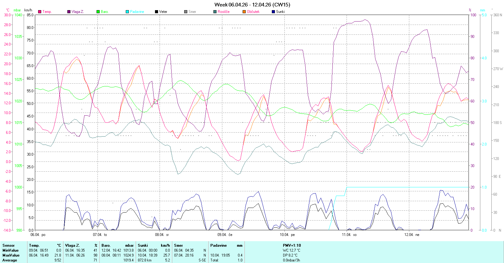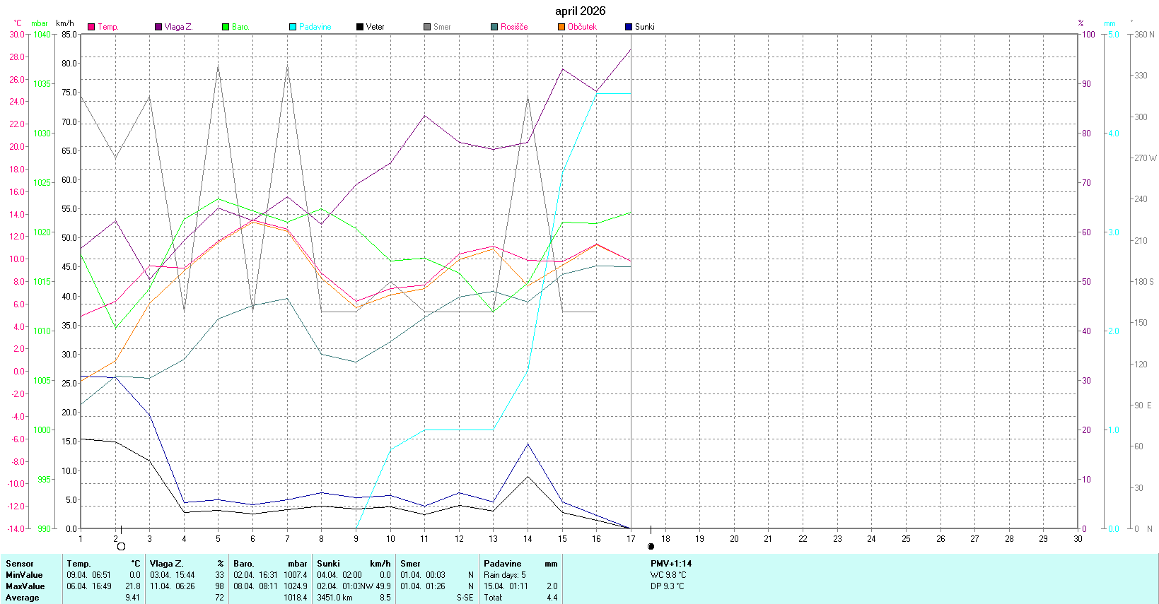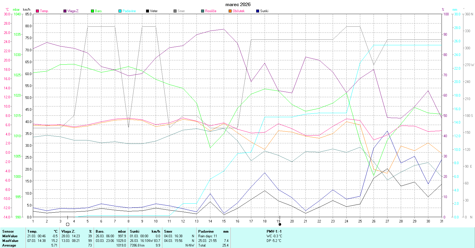 Podatki so izmerjeni z vremensko postajo Davis Vantage PRO2